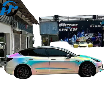 Suministro directo de fábrica PET TPU fundido brillante Arco Iris cromo blanco coche envoltura vinilo completo 1,52x18M/5x60FT rollo de pegatinas para coche